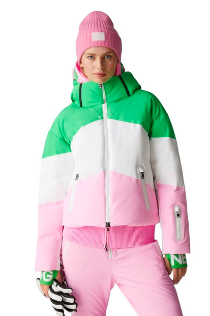 The Bogner Vila down ski jacket in waterproof, breathable and water-repellent four-way stretch material with blend of goose down and recycled technical fiber ensures optimal thermal insulation.